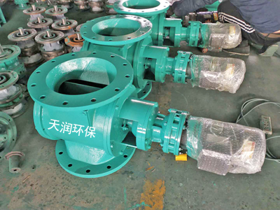 工作時,粉塵靠自身重力落下,充滿上面和側(cè)面的星形葉片空格內(nèi)。葉片轉(zhuǎn)子由電動機(jī)通過減速機(jī)轉(zhuǎn)動軸帶動,葉輪轉(zhuǎn)到下部粉塵靠自重卸下。這種卸塵器一般都安裝在除塵器灰斗下部,為確保連接處的嚴(yán)密不漏風(fēng),在回轉(zhuǎn)卸料器的上部應(yīng)經(jīng)常保持(儲存)高度的粉塵。因為葉輪轉(zhuǎn)動時,卸完粉塵后葉輪轉(zhuǎn)上的那一面經(jīng)常是沒有粉塵的,所以容易使空氣漏入。為了確保不漏氣應(yīng)保持某種高度的灰塵柱,使其不致卸空,在灰斗內(nèi)裝設(shè)料位信號設(shè)施,并與卸塵閥的電動機(jī)建立連鎖。