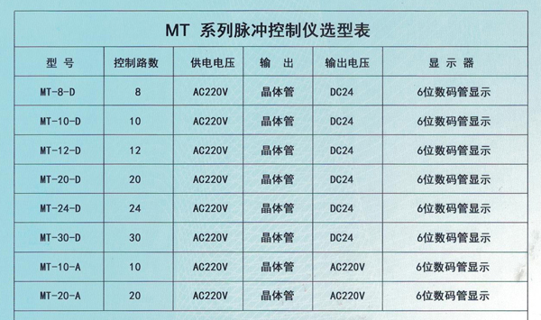 MT智能型控制儀兩個電位器調節(jié)和按鍵設置參數或四個按鍵設置參數,使用只有脈沖閥的除塵器上