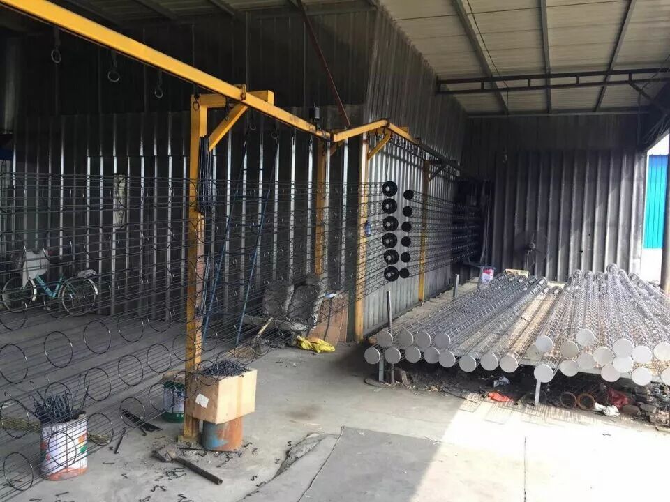 噴塑的技術(shù)原理: 使用電暈放電使粉末涂料吸附在骨架上的。其流程是:粉末涂料由供粉系統(tǒng)借壓縮空氣氣體送入噴嘴,在噴嘴前端加有高壓靜電發(fā)生器發(fā)生的高壓,因?yàn)殡姇灧烹?,在其鄰近發(fā)生密集的電荷,粉末由嘴噴出時(shí),形成帶電涂料粒子,它受靜電力的作用,被吸到與其_性相反的骨架上面,隨著噴上的粉末增多,電荷積累也越多,當(dāng)?shù)竭_(dá)厚度時(shí),由于產(chǎn)生靜電排斥作用,便不持續(xù)吸附,從而使整個(gè)骨架厚度達(dá)到0.1mm的粉末涂層,然后經(jīng)過高溫使粉末熔融、流平、固化,即在骨架外表構(gòu)成堅(jiān)硬的涂膜,從而達(dá)到表面防腐處理。